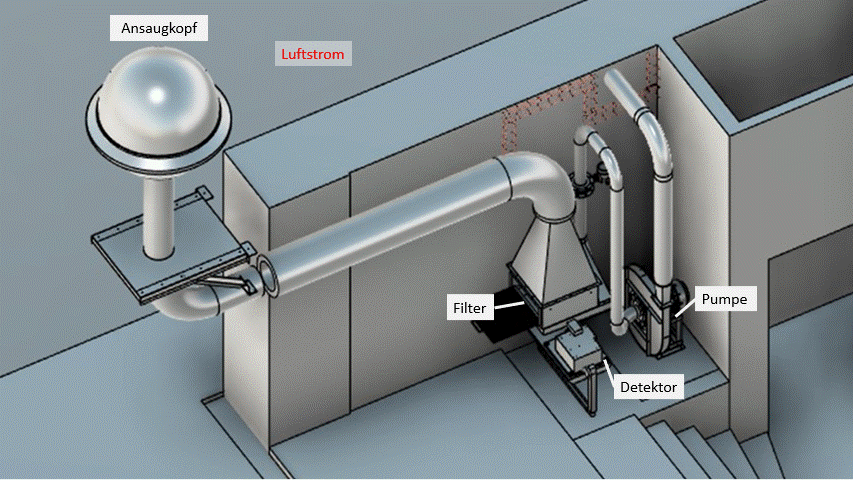 Umgebungsluft wird mit einem Durchsatz von 600 m³/h über einen geheizten Ansaugkopf durch einen 40 × 50 cm grossen Filter geleitet. Eine geregelte Pumpe sorgt für einen konstanten Luftstrom. Unter dem Filter ist ein empfindlicher Germanium-Detektor (HPGe, 40%) installiert der fortlaufend ein Gammaspektrum mit hoher Energieauflösung aufzeichnet.