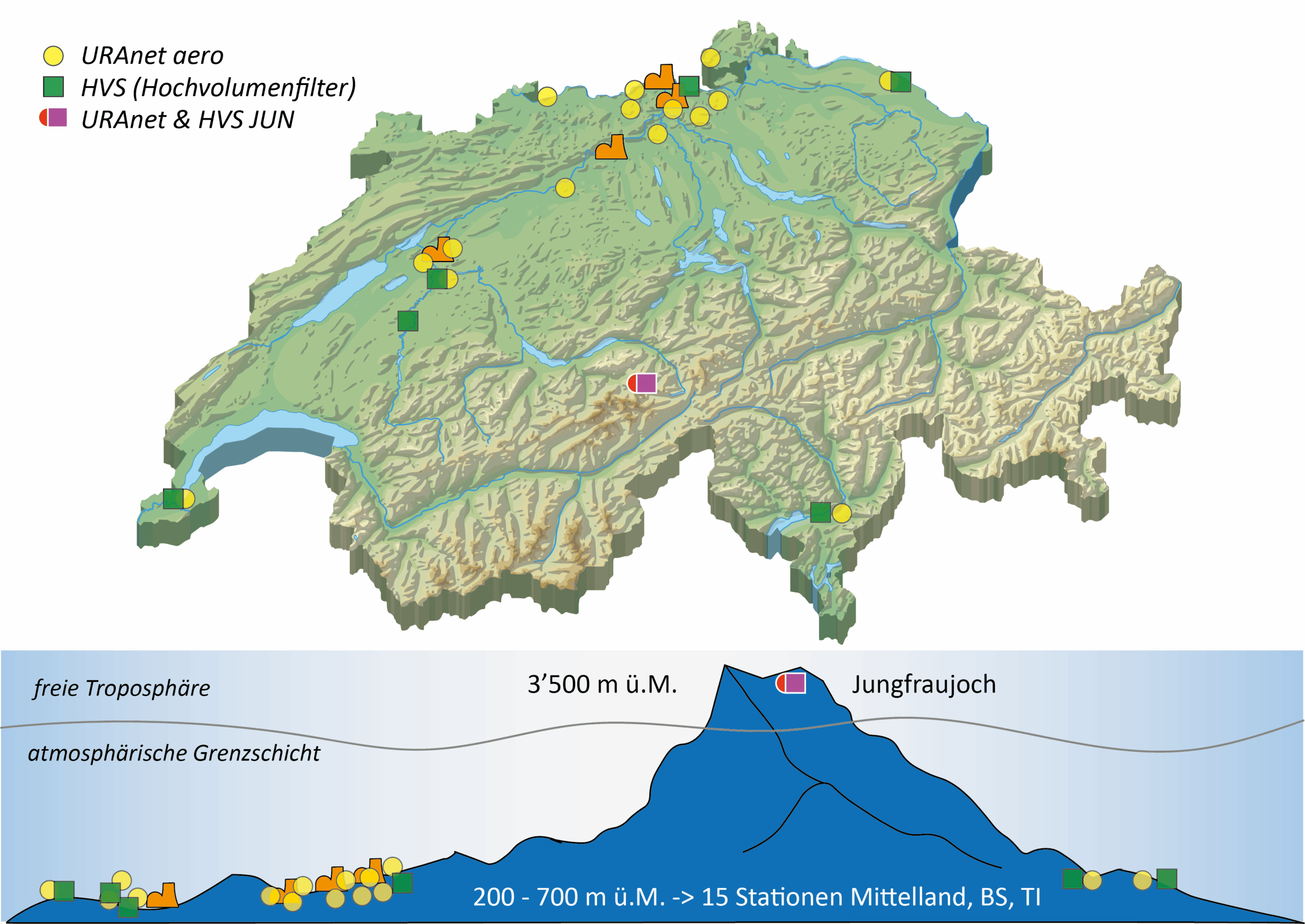 Das Bundesamt für Gesundheit überwacht in der Schweiz permanent die Radioaktivität in der Luft. Gemessen wird mit dem automatischen Messnetz URAnet aero von 15 Sonden in der ganzen Schweiz. Dazu kommen an sechs Standorten hochempfindliche Messungen von Hochvolumenluftfilter HVS. Die neu entwickelte Messeinrichtung auf dem Jungfraujoch ergänzt die beiden Messsysteme und ersetzt die bisherigen Messflüge der Tiger-Flugzeugflotte, die 2027 ausser Betrieb genommen wird.