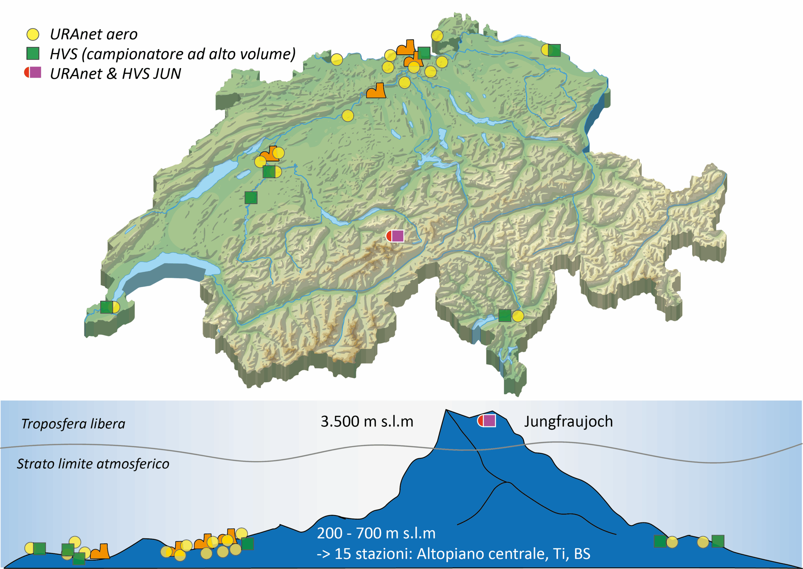 In Svizzera, l’Ufficio federale della sanità pubblica sorveglia permanentemente la radioattività nell’aria. Le misurazioni avvengono tramite la rete di misurazione automatica URAnet aero, costituita da 15 sonde in tutta la Svizzera. Inoltre, vengono effettuate misurazioni ad alta sensibilità in sei località mediante campionatori ad alto volume HVS. Il nuovo dispositivo di misurazione sullo Jungfraujoch completa i due sistemi di misurazione e sostituisce i voli di misurazione finora effettuati con la flotta di aerei Tiger, che sarà messa fuori servizio nel 2027.