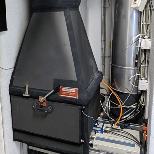 Tecnicamente, la misurazione della radioattività nell’aria a un’altitudine di 3500 m s.l.m. è una sfida. L’impianto deve essere in grado di trattare affidabilmente grandi quantità d’aria anche con temperature fino a meno trenta gradi, elevata umidità e forti venti. L’UFSP ha sviluppato appositamente nuove soluzioni tecniche.